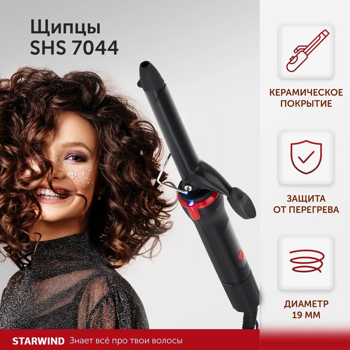 Щипцы Starwind SHS 7044 25Вт макс.темп.:200С покрытие:керамическое черный/красный