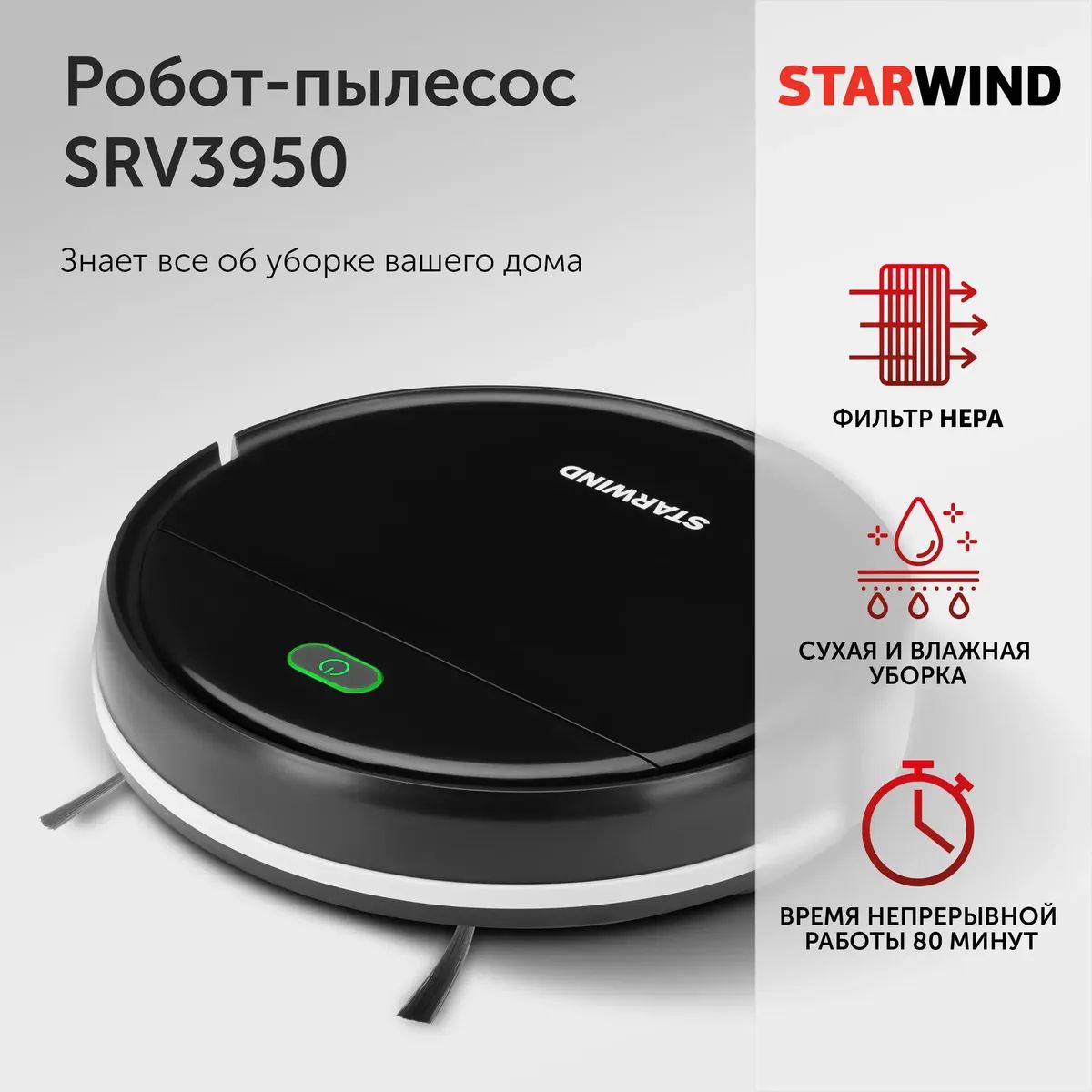 Пылесос-робот Starwind SRV3950 18Вт черный