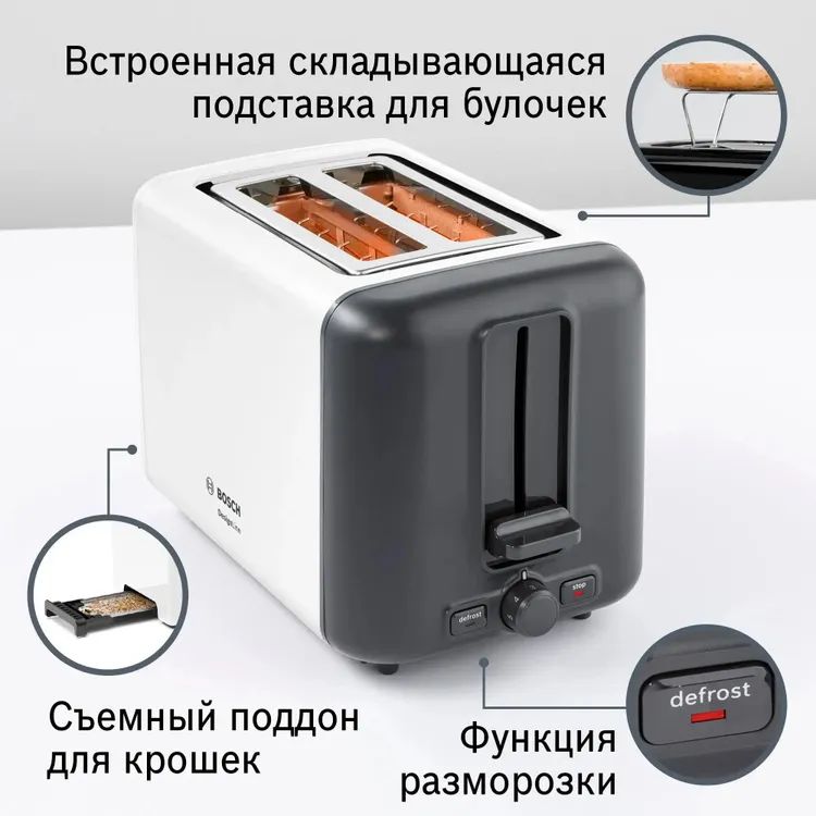 Тостер Bosch TAT3P421 970Вт белый/черный