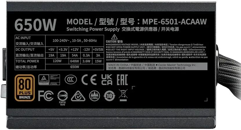 Блок питания Cooler Master MWE Bronze V3 Gen.5, 650Вт, 80 PLUS BRONZE, 120мм, черный, retail