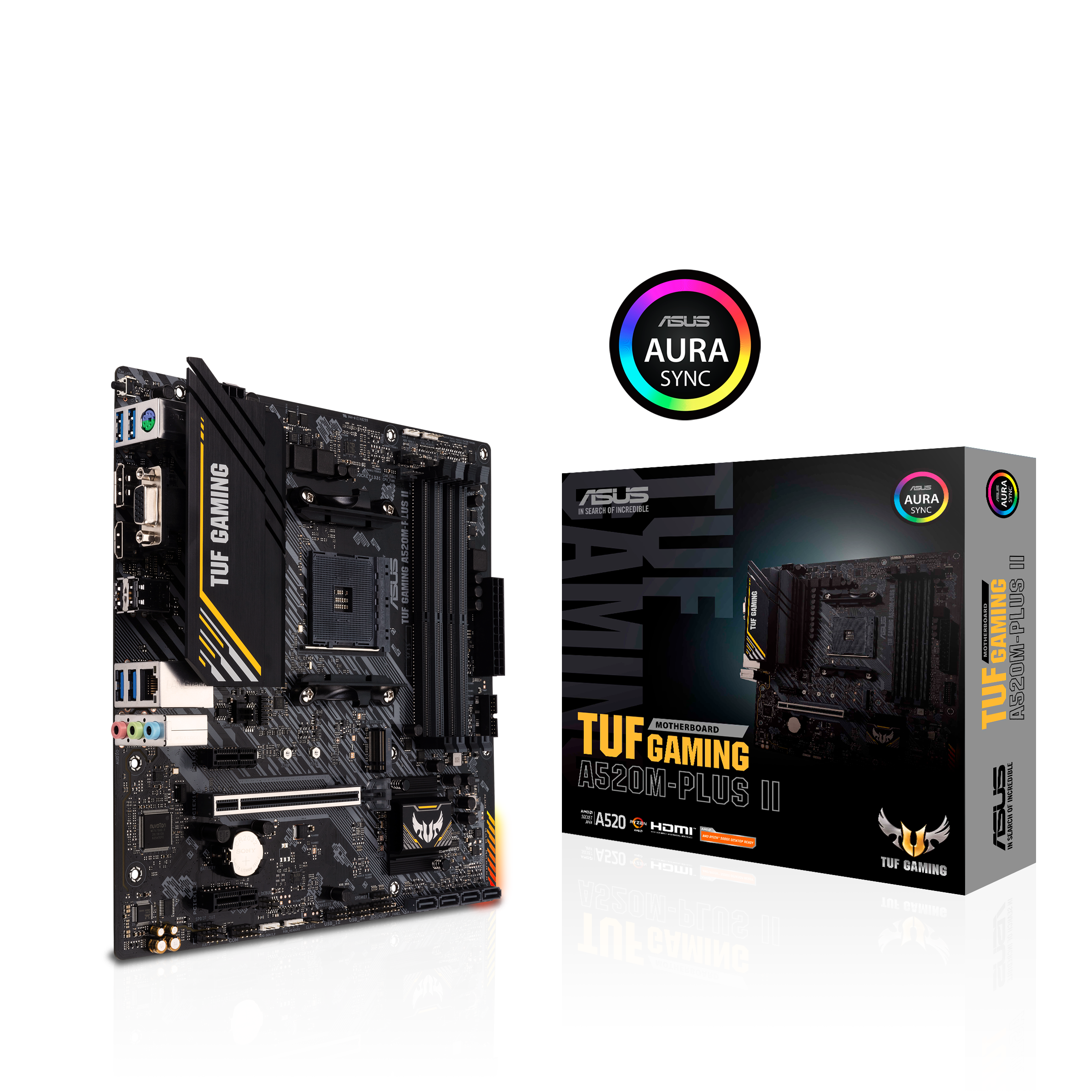 Игровая материнская плата AMD A520 (Ryzen AM4) micro ATX с поддержкой M.2, DisplayPort, HDMI, D-Sub, портами USB 3.2 Gen 1, SATA 6 Гбит / с и разъемами AURA Addressable Gen 2 ASUS TUF GAMING A520M-PLUS II