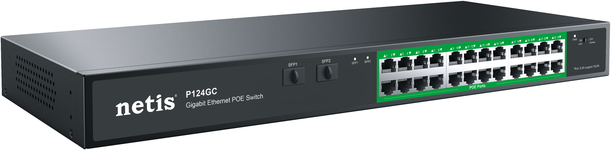 Неуправляемый PoE+ Gigabit Ethernet коммутатор NETIS P124GC 24PORT 10/1000M POE 2 SFP COMBO