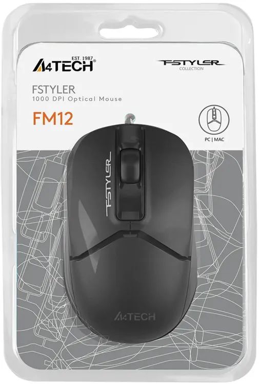 Мышь A4Tech Fstyler FM12S черный оптич. 1200dpi silent USB 3but (FM12S BLACK)
