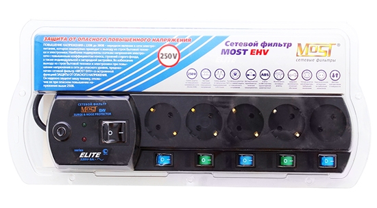 Сетевой фильтр Most EHV, 5 розеток черный, шнур 2м (760067)