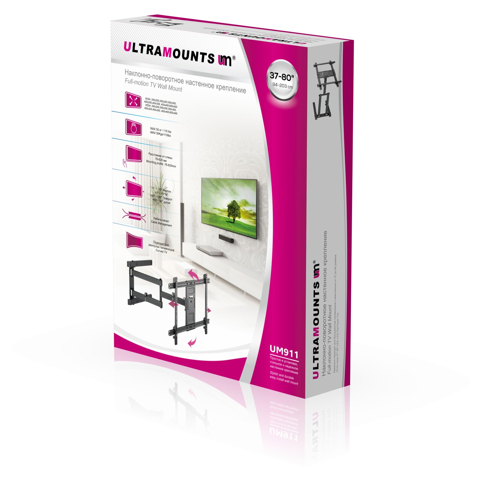 Кронштейн для телевизора Ultramounts UM 911 черный 37"-80" макс.50кг настенный поворотно-выдвижной и наклонный