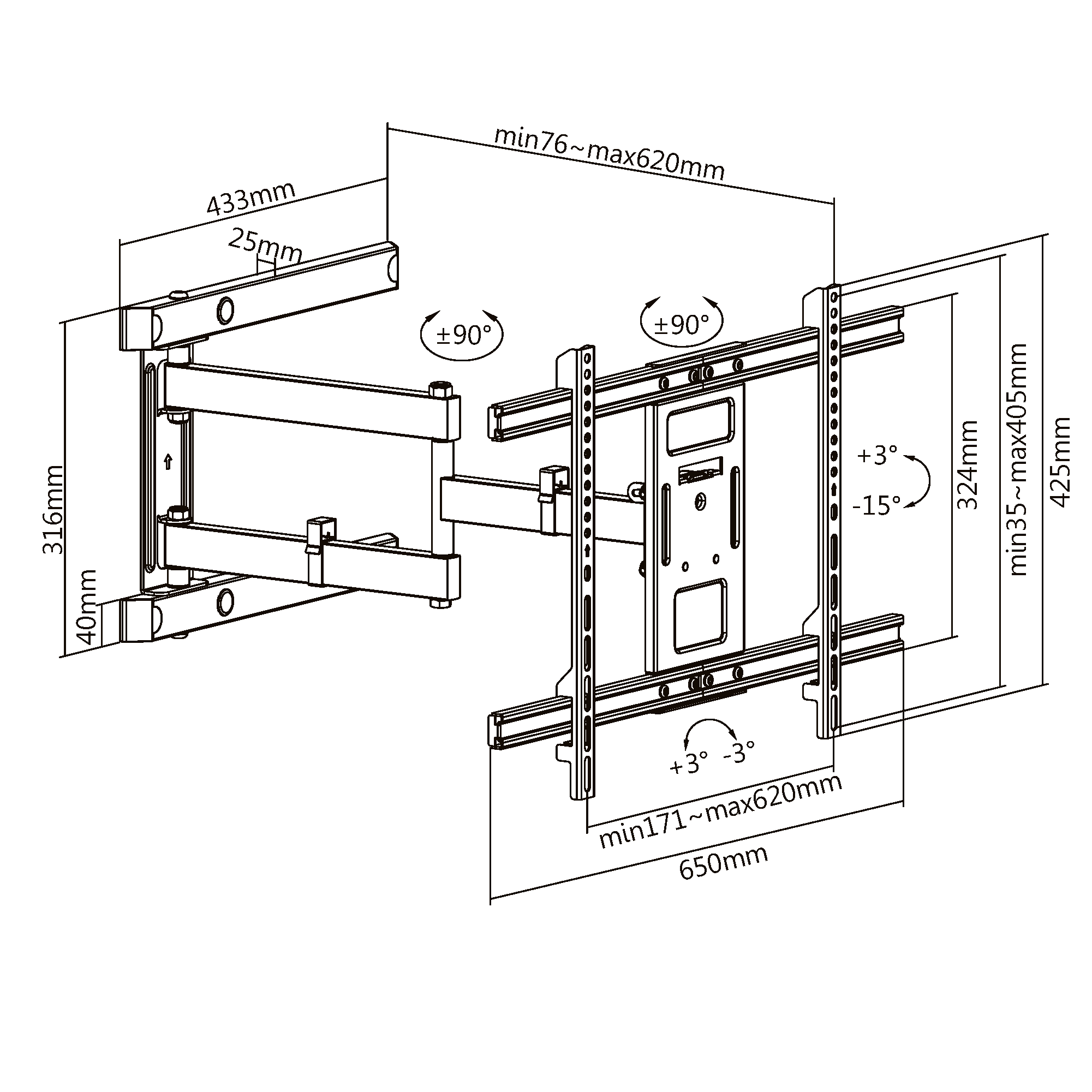 Расстояние от стены: 76~620 мм