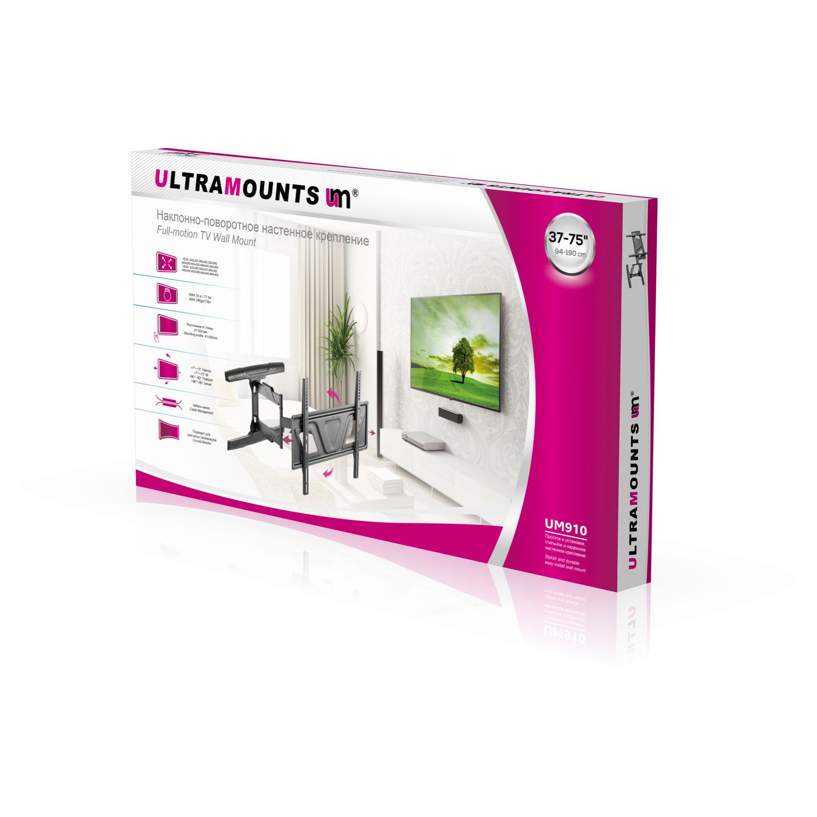 Кронштейн Ultramounts UM 910 37-75" max 35кг VESA 600x400 поворотно-выдвижной и наклонный