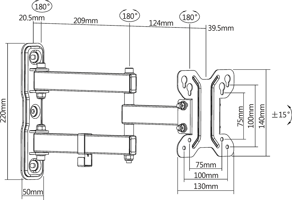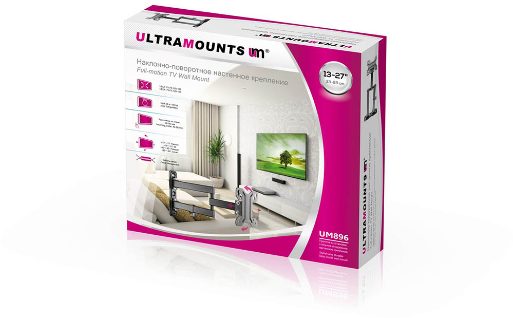 Кронштейн Ultramounts UM896 для телевизора, настенный, 13-27", до 30 кг, выдвижной, наклонный, поворотный, чёрный