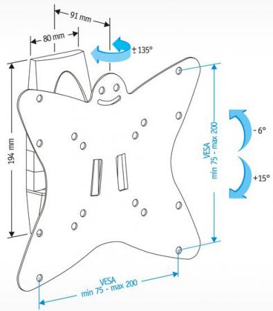 Кронштейн Holder LCDS-5036 серый для ЖК ТВ 19-37" настенный от стены 91мм наклон +6°/-15° поворот 135° до 30кг