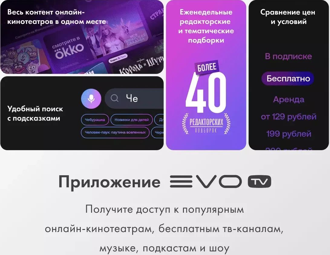 - Пульт, подставка, руководство пользователя, гарантийный талон Dolby Vision IQ, цифровое шумоподавление, поддержка MEMC, Upscale 4K, Dolby Atmos, DBX-TV, HDMI ARC/CEC, голосовое управление без пульта, родительский контроль, поворотная подставка (-20° /+20°), пульт ДУ на солнечной батарее