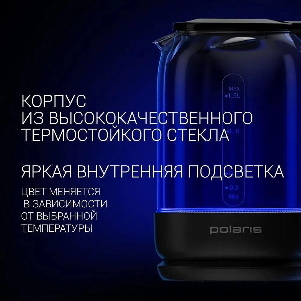 Чайник электрический Polaris PWK 1712CGLD WIFI IQ Home 1.5л. 2150Вт черный (корпус: стекло)