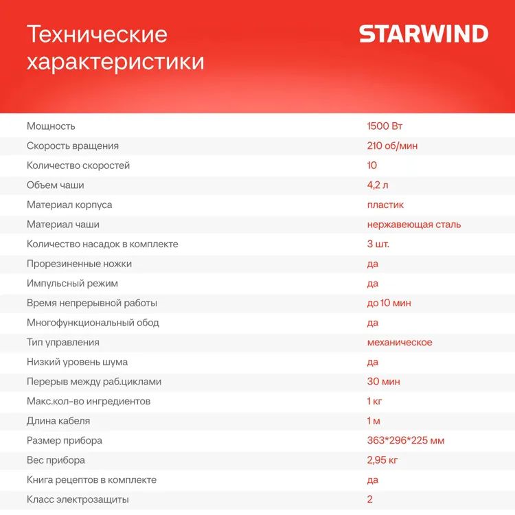 - Миксер, венчик для взбивания, крюки для теста, лопатка для перемешивания.