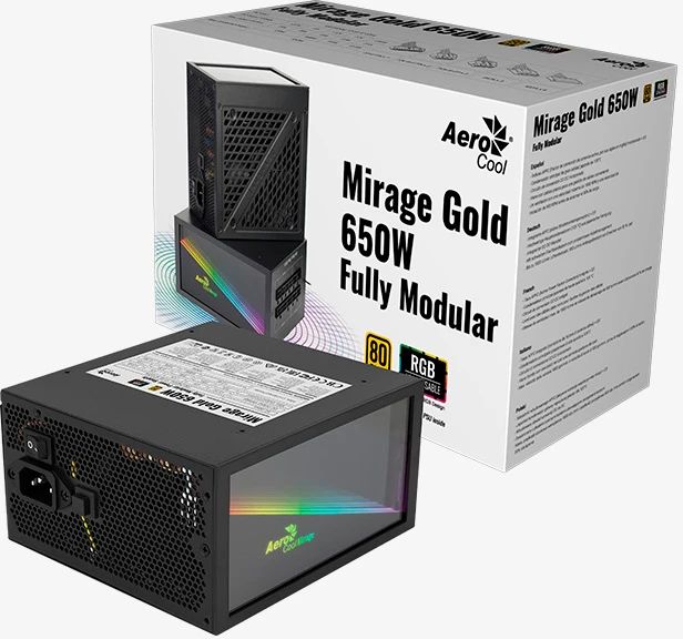 Блок питания AeroCool Mirage Gold 650W Fully Modular 80+Gold, APFC, 120mm fan, ARGB, 4711099472581
