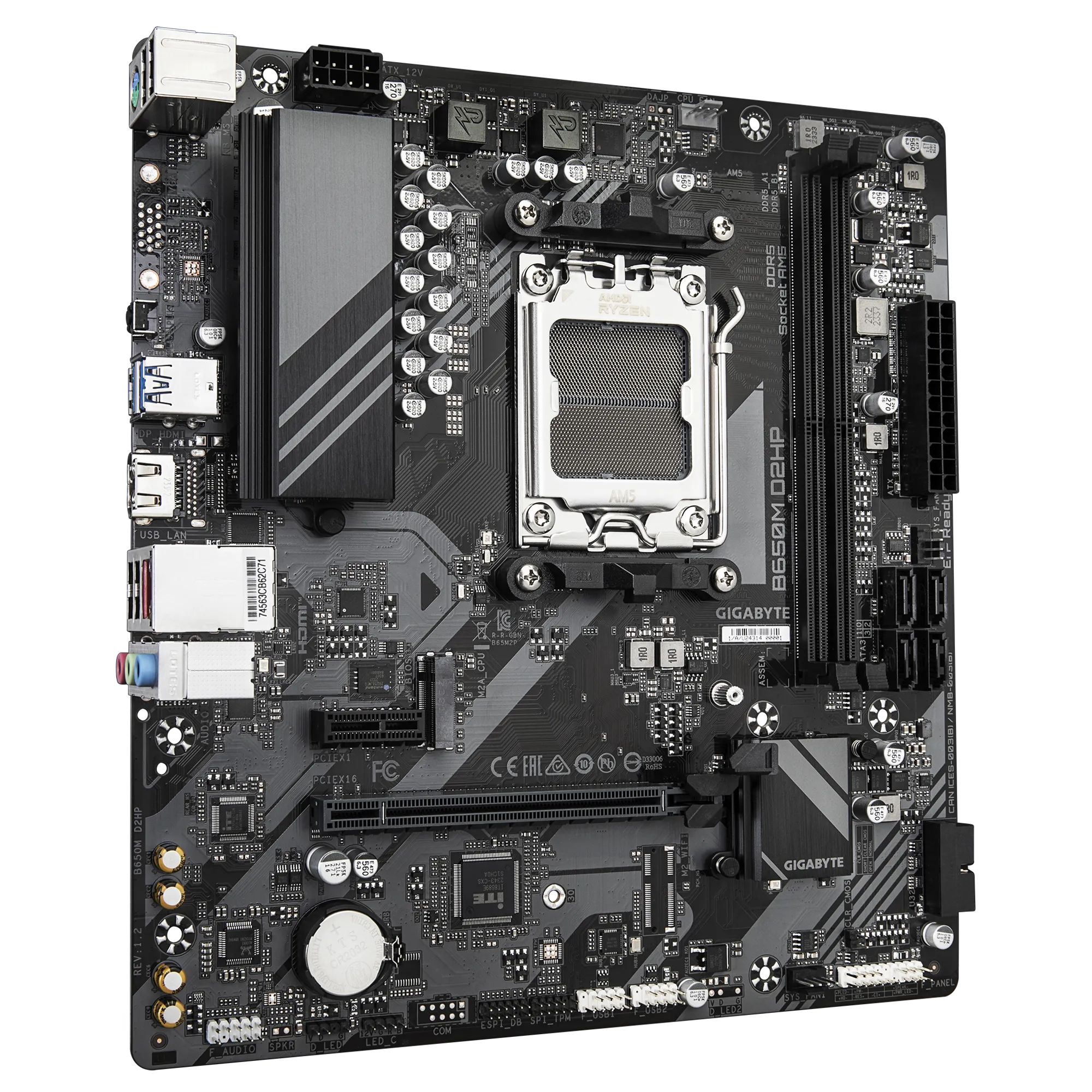Материнская плата Gigabyte B650M D2HP, AM5, AMD B650, 2xDDR5, PCI-E 4.0, M.2, 2xUSB 3.2 Gen1, HDMI, mATX