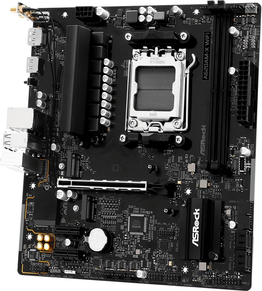 Материнская плата ASRock A620AM-X WiFi, Socket AM5, AMD A620A, mATX, Ret