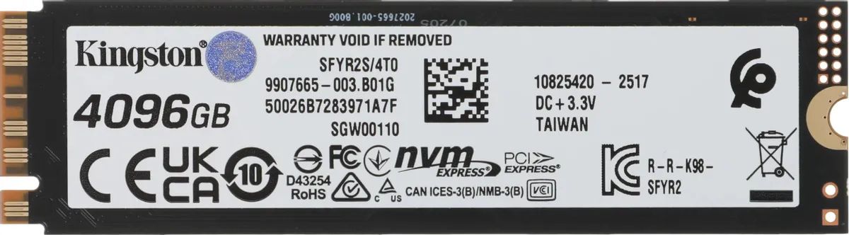 Накопитель SSD Kingston PCIe 5.0 x4 4TB SFYR2S/4T0 Fury Renegade M.2 2280