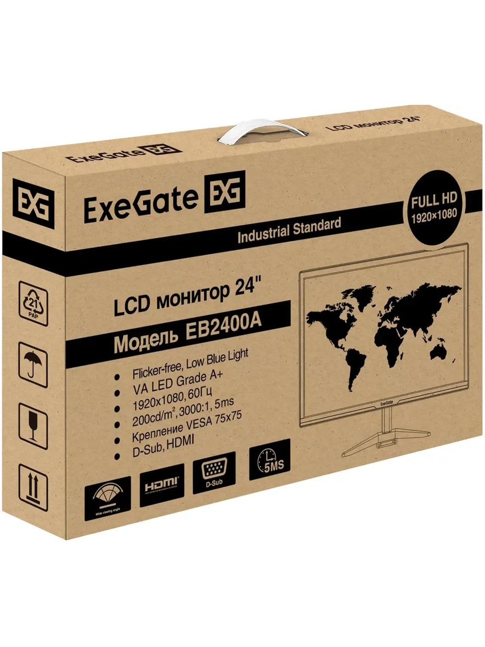 Монитор ExeGate 23.8" EB2400A черный {VA 1920x1080 75Hz 5ms 16:9 200cd 3000:1 170/160 D-Sub HDMI VESA регулировка наклона} [EX297377RUS]