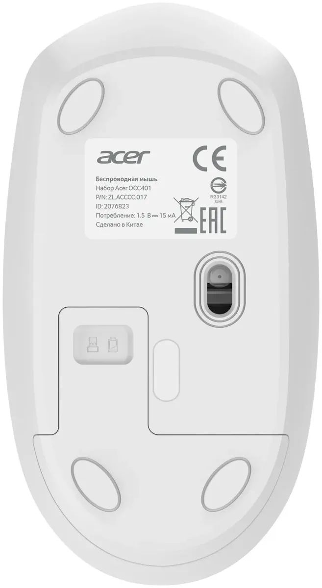 Клавиатура + мышь Acer OCC401 клав:белый мышь:белый USB беспроводная (ZL.ACCCC.017)