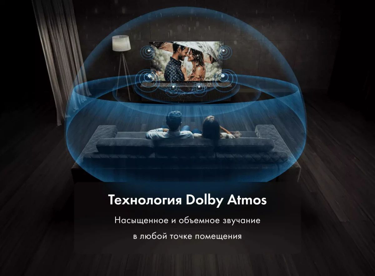 - Пульт, подставка, руководство пользователя, гарантийный талон Dolby Vision IQ, цифровое шумоподавление, поддержка MEMC, Upscale 4K, Dolby Atmos, DBX-TV, HDMI ARC/CEC, голосовое управление без пульта, родительский контроль, поворотная подставка (-20° /+20°), пульт ДУ на солнечной батарее